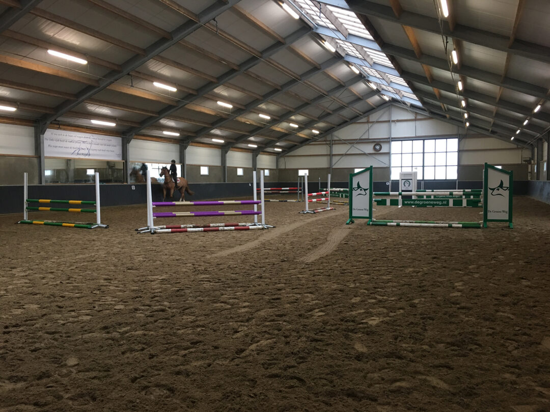 De mogelijkheden bij Veldhuisen Stables Nigtevecht voor de paarden en veulens zijn zeer divers, want wij beschikken over een buitenrijbaan (20×60) met een Swanenberg bodem. Dankzij deze bodem is het mogelijk om in alle weersomstandigheden de paarden en veulens buiten te trainen. Daarnaast hebben wij een binnenrijbaan (20×40) eveneens met een Swanenberg bodem.
